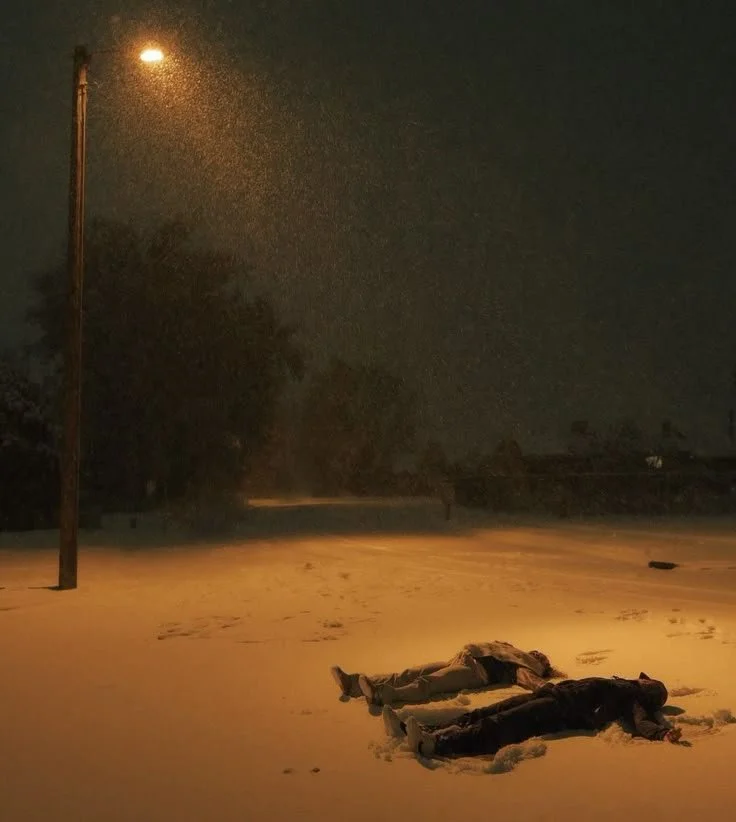 I wake from a nap, slick with sweat, snow swaying down like fallen stars. And although I fight with myself for an instant, I cannot help but remember you. The walls are quiet now, crayon lines smothered by thick layers of white paint, but the nail markings where your photographs once hung remain scars that remind me of your absence. Tea scorches my tongue, honey chokes my throat like a lie.